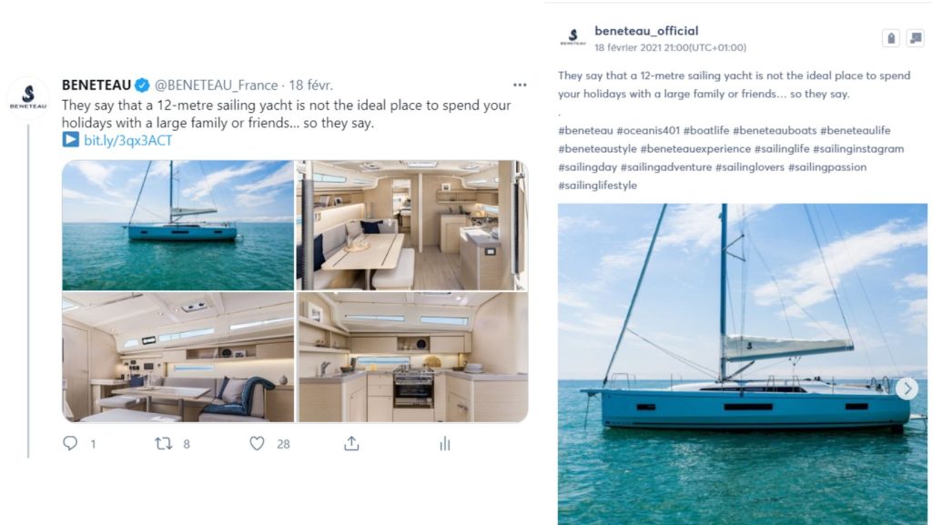 - Des comptes identifiés comme référence parmi la concurrence (qui copient) et par les parties-prenantes de l’écosystème Bénéteau (médias, concessionnaires) dont les relations se sont ainsi renforcées